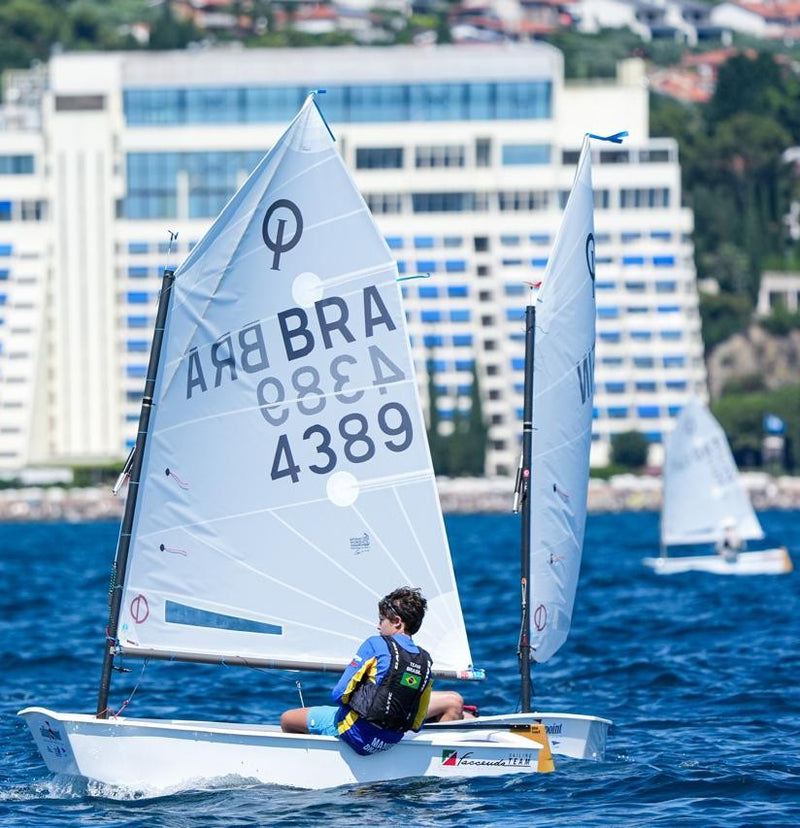 - Halyard system already installed in the mast with Optimist hook-in block, halyard line with ring and control line.
